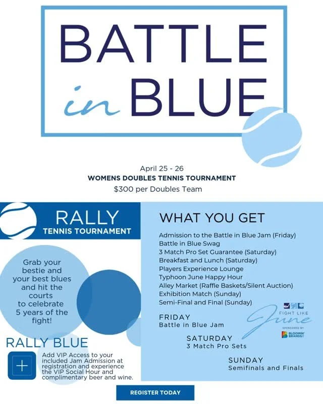 In her 2020-2021 USTA tennis season, June, played over 160 Tennis matches with her chemo-pack hidden under her clothes. Her team qualified for the National Championships.
